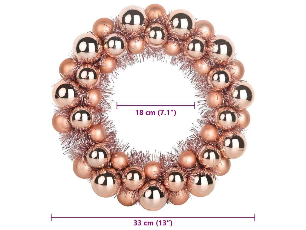 Vánoční koulové věnce 2 pcs růžové zlato 33 x 33 x 7 cm 42019686
