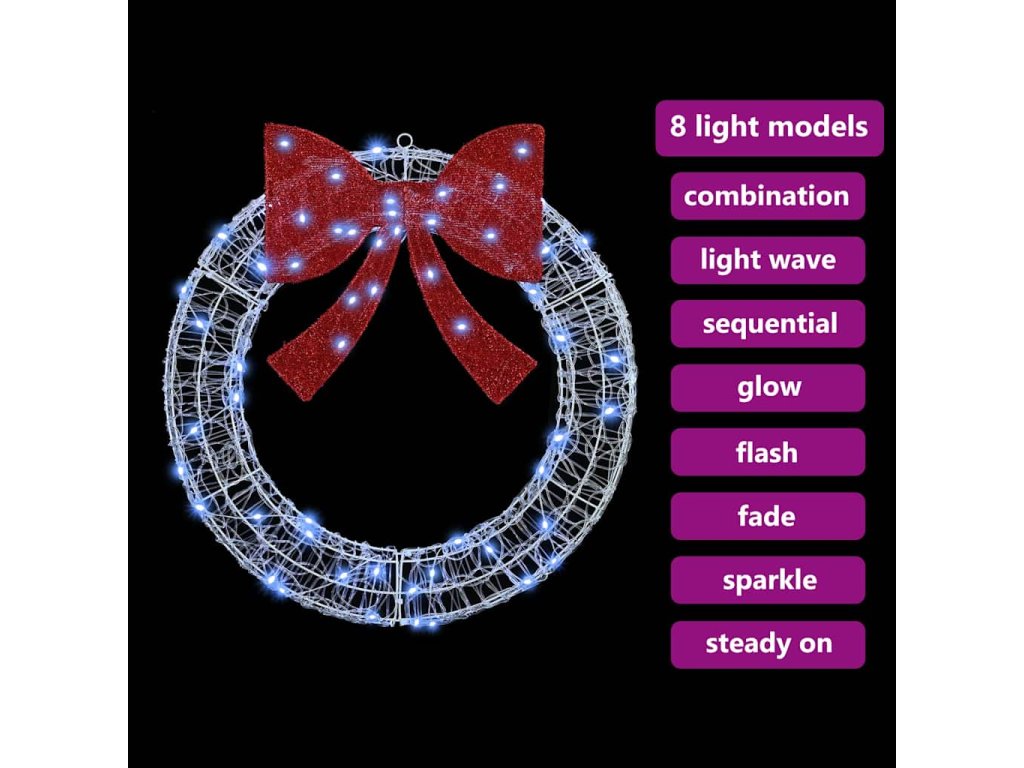Elegantní akrylový materiál Vysoce kvalitní akryl dělá tento věnec super elegantním, jeho lesklý povrch krásně odráží světlo a dodává vaší výzdobě nádech sofistikovanosti. Lehkost usnadňuje manipulaci a zajišťuje dlouhou životnost. Jemné osvětlovací LED světla Díky flexibilním LED páskům tento věnec přináší teplé, příjemné světlo do jakéhokoli prostoru. Energeticky úsporné LED nabízejí nastavitelnou jasnost a příjemnou atmosféru, která umocní vánoční náladu a váš domov udělá vítaným místem. Pohodlí napájení přes USB Navržen tak, aby vyhovoval moderním domovům, USB napájení umožňuje bezproblémové připojení k jakémukoli standardnímu USB portu. To poskytuje možnost umístit ho na dveře, stěny nebo stoly bez použití klasických zásuvek. Stylový moderní design S čistými, prostými liniemi a minimálním zdobením se tento věnec skvěle hodí k ostatní výzdobě. Ideální pro fanoušky minimalistického stylu, přináší moderní nádech do vaší sezónní výzdoby. Snadné sestavení Dodáván jako jeden kus, sestavení je jednoduché, stačí připevnit mašli a umístit LED pásky. Díky uživatelsky přívětivému procesu strávíte víc času užíváním volna na Vánoce.- Barva: Studená bílá