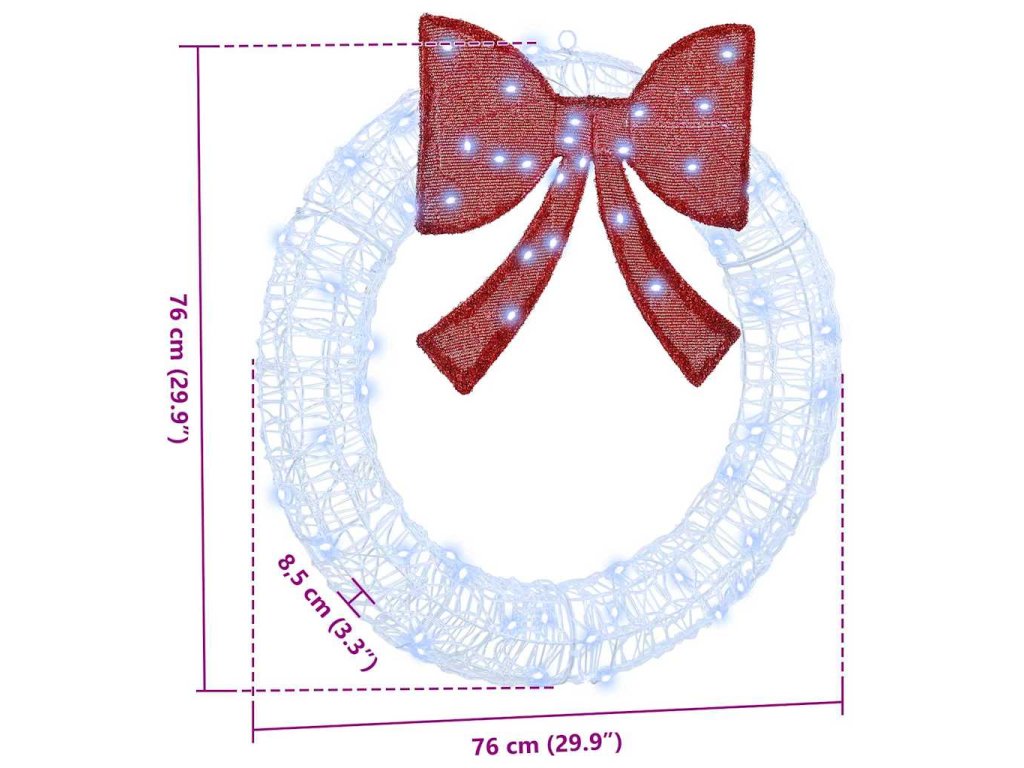 Tento úžasný věnec, vyrobený z kvalitního akrylu, přináší ducha moderního designu. Spojuje jednoduchost a sváteční kouzlo, takže je jedinečným středobodem vaší vánoční výzdoby, s vkusnou mašlí nahoře. Jeho elegantní vzhled a všestranné možnosti umístění ho dělají ideální volbou pro tradiční i moderní domovy.