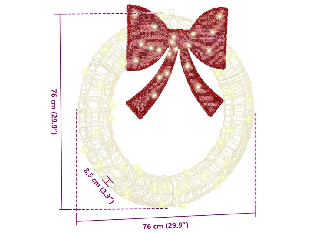 Tento úžasný věnec, vyrobený z kvalitního akrylu, přináší ducha moderního designu. Spojuje jednoduchost a sváteční kouzlo, takže je jedinečným středobodem vaší vánoční výzdoby, s vkusnou mašlí nahoře. Jeho elegantní vzhled a všestranné možnosti umístění ho dělají ideální volbou pro tradiční i moderní domovy.