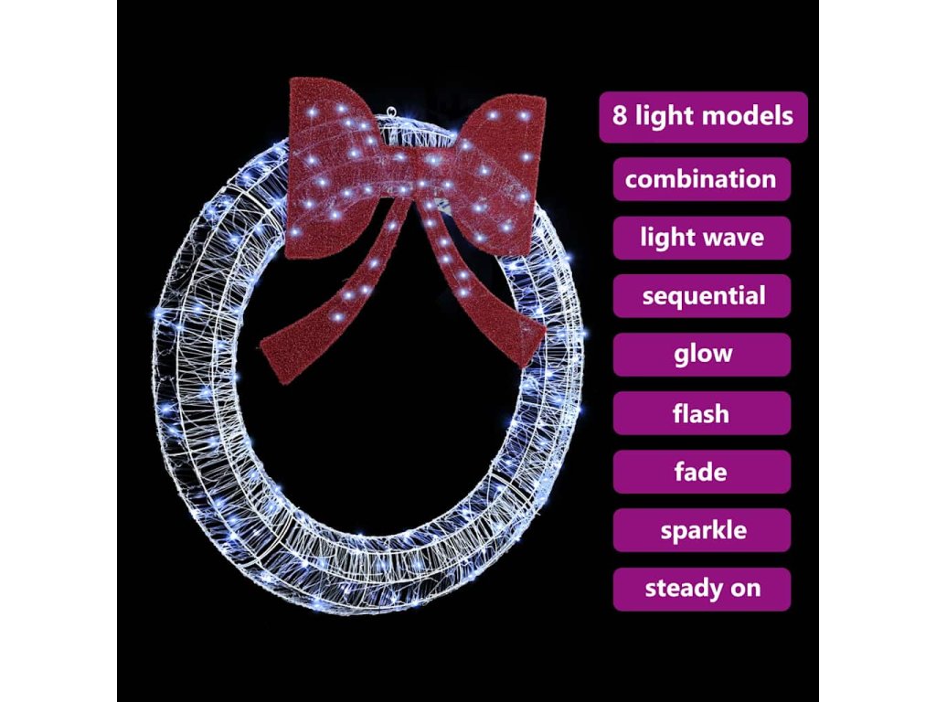 Tento úžasný věnec, vyrobený z kvalitního akrylu, představuje moderní design. Kombinuje jednoduchost a vánoční kouzlo, stává se tak skvělým středobodem vaší vánoční výzdoby s hezkou mašlí nahoře. Perfektně se hodí k jakémukoli vánočnímu stylu díky svému elegantnímu vzhledu a různým možnostem umístění, což z něj dělá ideál pro tradiční i moderní domácnosti.