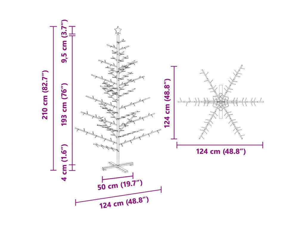 Dřevěný vánoční strom Přírodní 210 cm Masivní borovicové dřevo 42018058