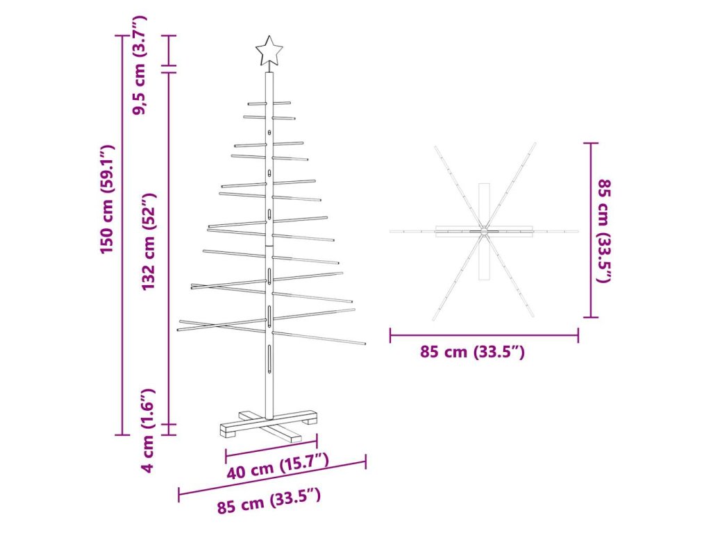 Tento rustikální vánoční strom z masivního dřeva vyjadřuje sváteční ducha se svým parádním designem. Jako symbol radosti dodá vaší sezónní výzdobě šmrnc, spojuje tradici s moderním stylem. Perfektní pro útulnou atmosféru v obýváku nebo na terase, působí skromně a elegantně. Jeho přírodní barvy a čisté linie osvěží jakýkoli prostor a vytvoří klidnou atmosféru, která všechny zve k radostnému slavení sezóny.