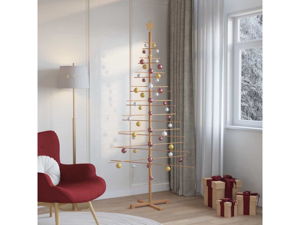 Tento rustikální vánoční strom z masivního dřeva vyjadřuje sváteční ducha se svým parádním designem. Jako symbol radosti dodá vaší sezónní výzdobě šmrnc, spojuje tradici s moderním stylem. Perfektní pro útulnou atmosféru v obýváku nebo na terase, působí skromně a elegantně. Jeho přírodní barvy a čisté linie osvěží jakýkoli prostor a vytvoří klidnou atmosféru, která všechny zve k radostnému slavení sezóny.