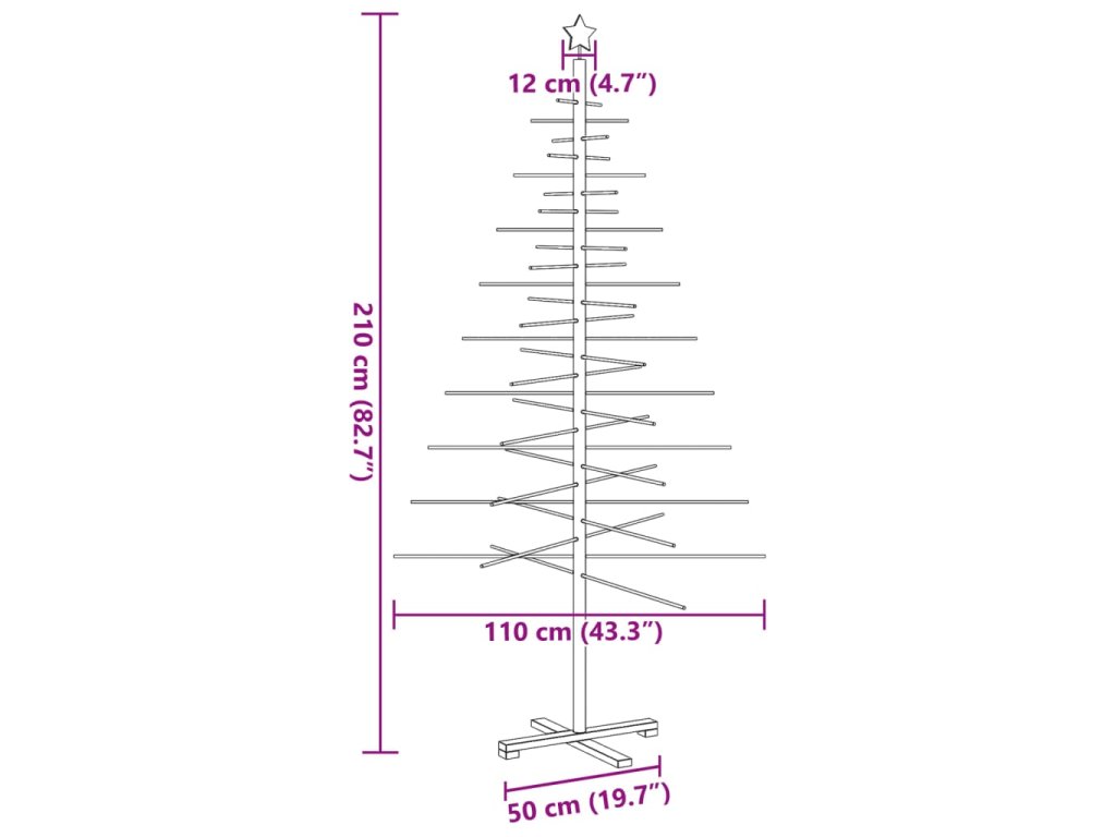 Dřevěný vánoční stromeček na ozdoby 210 cm masivní borové dřevo 4019695