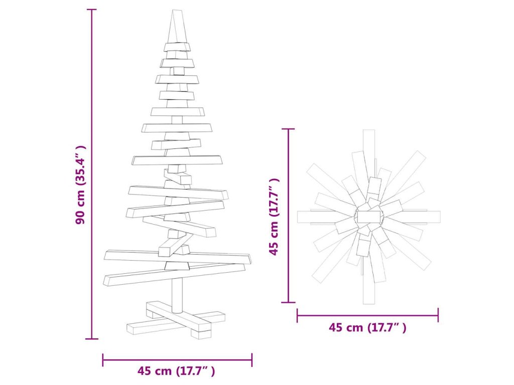 Dřevěný vánoční stromeček na ozdoby 90 cm masivní borové dřevo 357994