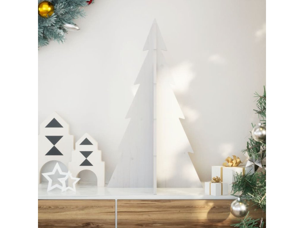 Dřevěný vánoční stromeček na ozdoby bílý 80 cm masivní borovice 858169