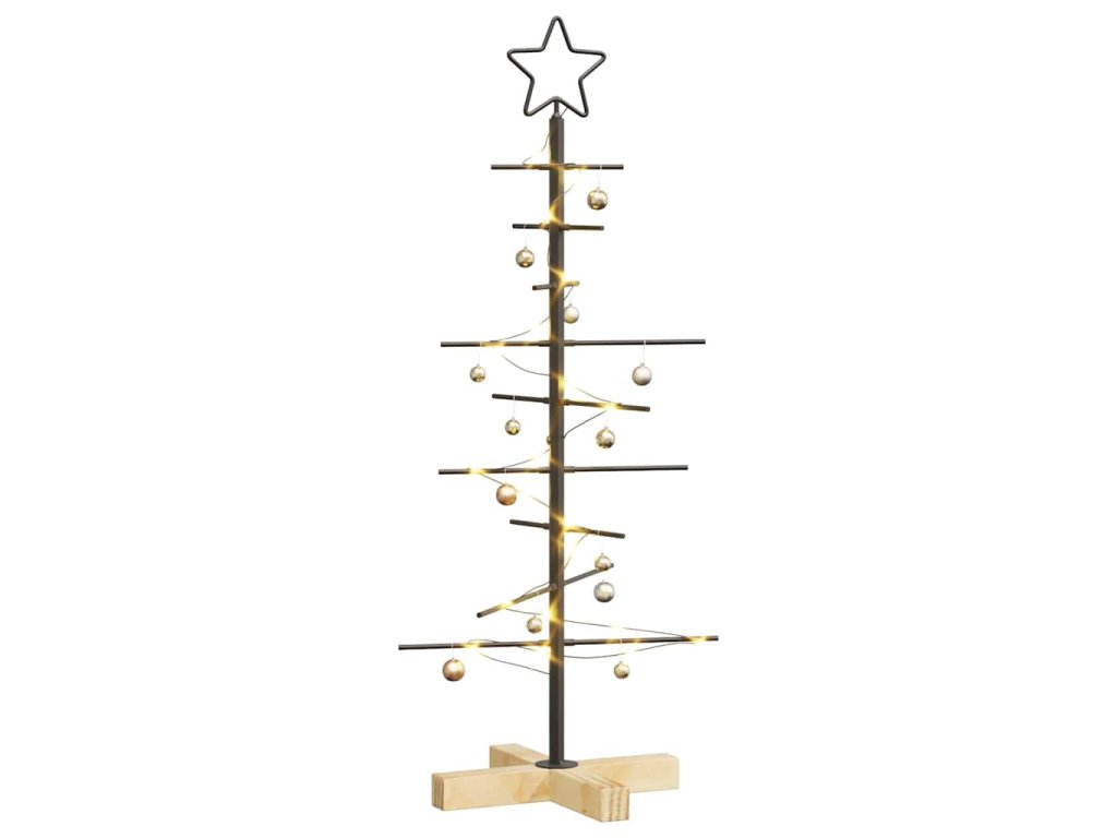 - Masivní Borová Základna: K elegantnímu stromečku skvěle ladí masivní dřevěná základna, která poskytuje stabilitu a rustikální kouzlo. Kontrast černého kovu a přirozené hnědé borovice přidává unikátní vizuální efekt a stromeček drží pevně na svém místě. Tato kombinace zajistí, že stromeček vydrží stát během celé sváteční sezóny, takže si majitelé mohou být jisti, že se nic nehne.