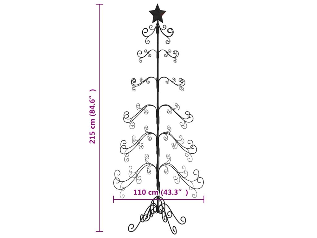 Kovový vánoční stromeček pro dekorace černý 215 cm 359609