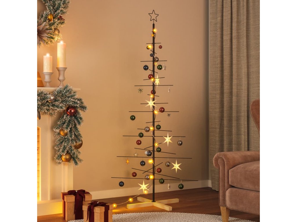 Kovový vánoční stromeček s dřevěnou základnou černý 180 cm 359605