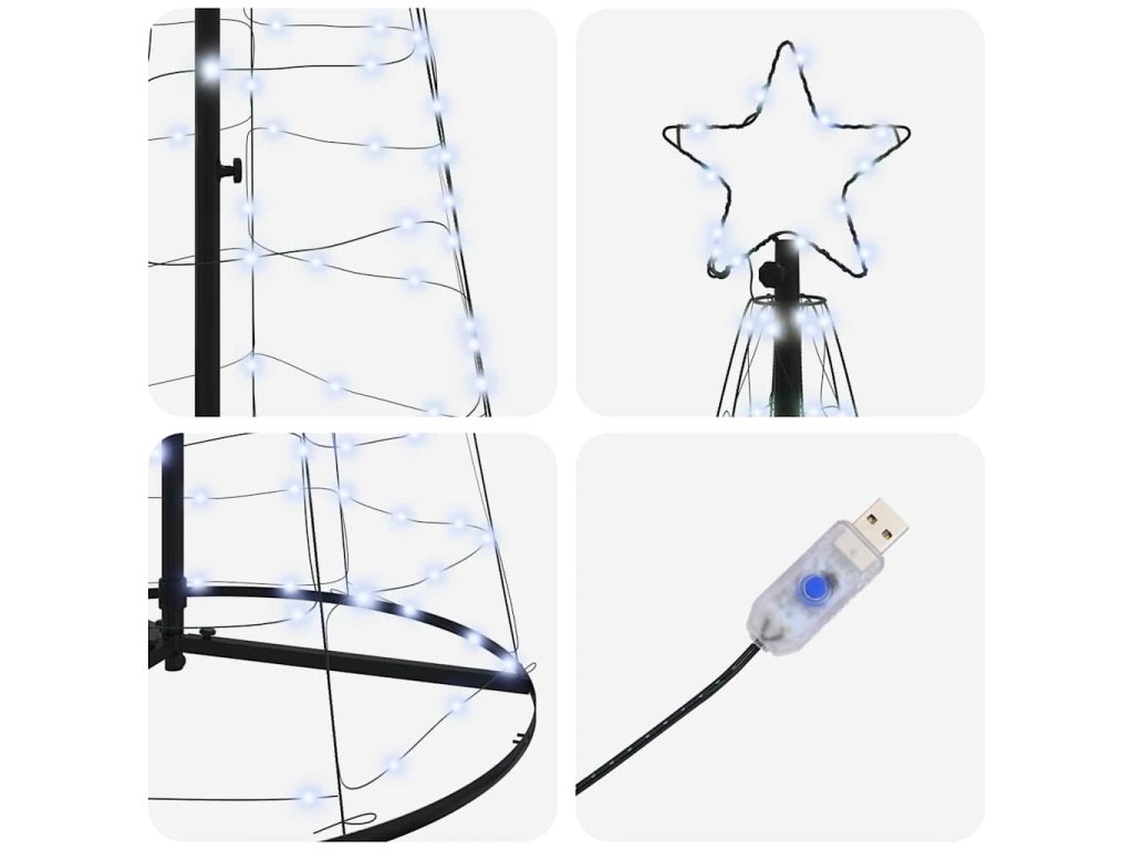 Vyrobený z odolného železa: Tenhle LED vánoční stromeček je vyrobený z kvalitního železa, které je pevné a odolné. Je navržený tak, aby odolal vánočnímu shonu a vydržel krásný tvar i po letech. USB napájení: Stromeček snadno připojíš k různým zdrojům, jako jsou počítače nebo USB adaptéry. Tenhle moderní způsob napájení eliminuje potřebu těžkých adaptérů, takže ho můžeš postavit kamkoliv. 8 různých LED režimů: S osmi unikátními blikajícími režimy nabízí stromeček různé možnosti osvětlení – od statického záření po dynamické vzory. Můžeš si tak přizpůsobit atmosféru na svátky. Ať už chceš klidný záblesk nebo jasnou záři, s jedním kliknutím si nastavíš ideální náladu. Stylové komponenty v balení: Balení obsahuje hvězdný rámeček, středový sloupek, LED světelný řetěz a kotvící kolíky. Každá součást pomáhá podpořit a osvětlit stromeček, čímž vytváří celkovou výzdobu. Jednoduchá údržba: Po svátcích udržuj stromeček jednoduše otřením suchým hadříkem. Snadná údržba ti umožní, aby vypadal svěže a byl připravený na další sezónu bez komplikací.- Barva: Studená bílá
