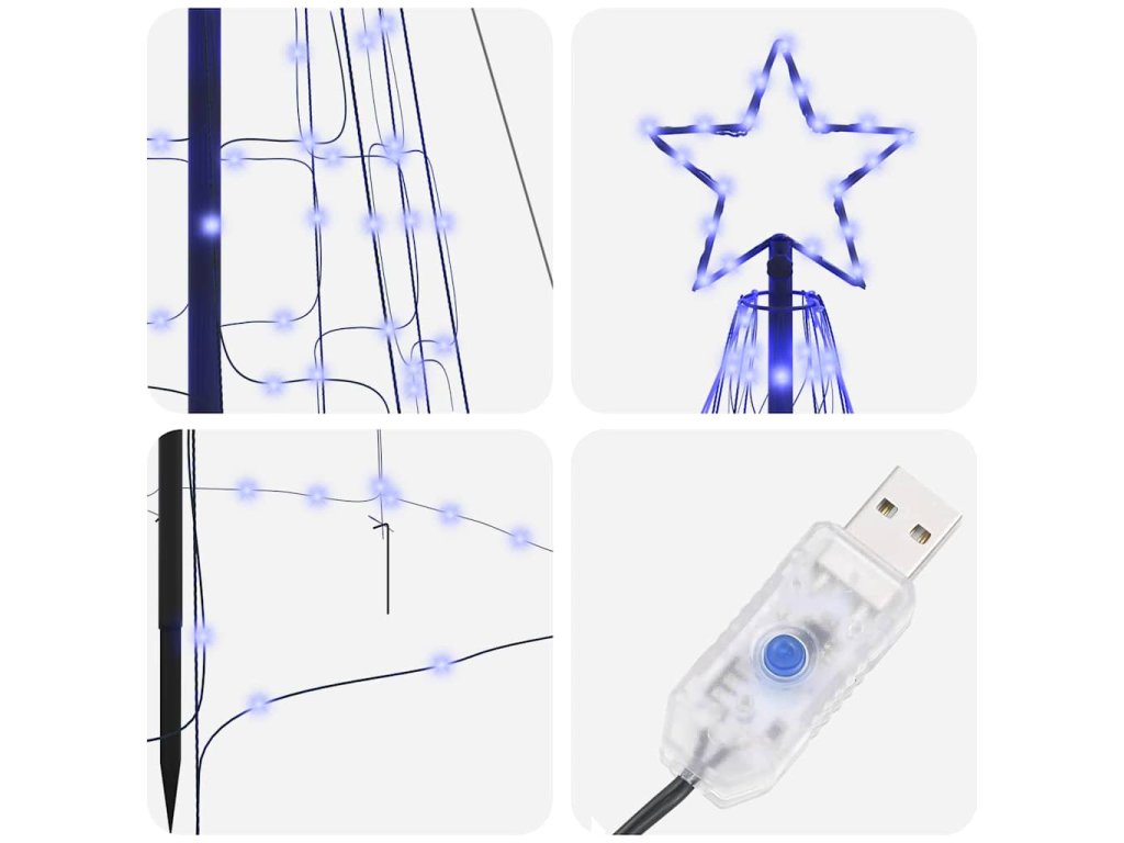 Tento vánoční stromek s LED osvětlením a hroty je unikátní sezónní dekorace, navržená tak, aby osvětlila jak vnitřní, tak chráněné venkovní prostory. Je ideální pro vánoční období a jeho moderní LED osvětlení se pyšní elegantními tvary s odolným železným rámem. Skvěle se hodí do domovů, kde hledají moderní a trendy vánoční výzdobu. Jeho inovativní styl vnáší sváteční atmosféru do obýváku, na zahradu nebo terasu a dává tak prostorům radostný nádech pro rodinná setkání a oslavy.