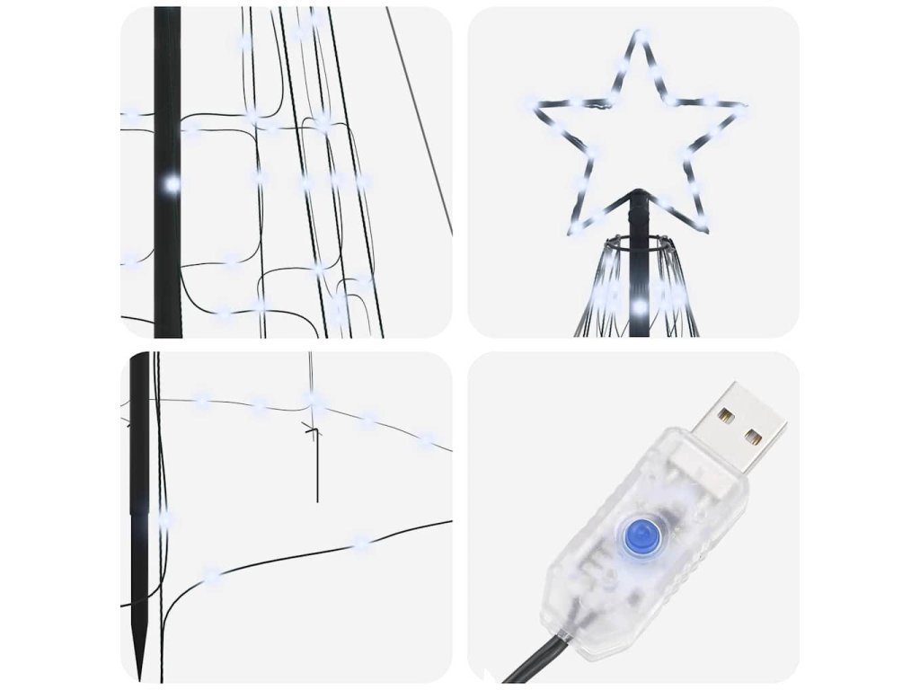 Tento vánoční stromek s LED osvětlením a hroty je unikátní sezónní dekorace, navržená tak, aby osvětlila jak vnitřní, tak chráněné venkovní prostory. Je ideální pro vánoční období a jeho moderní LED osvětlení se pyšní elegantními tvary s odolným železným rámem. Skvěle se hodí do domovů, kde hledají moderní a trendy vánoční výzdobu. Jeho inovativní styl vnáší sváteční atmosféru do obýváku, na zahradu nebo terasu a dává tak prostorům radostný nádech pro rodinná setkání a oslavy.