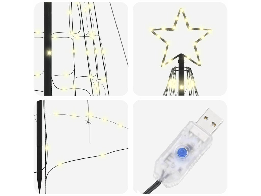 Tento vánoční stromek s LED osvětlením a hroty je unikátní sezónní dekorace, navržená tak, aby osvětlila jak vnitřní, tak chráněné venkovní prostory. Je ideální pro vánoční období a jeho moderní LED osvětlení se pyšní elegantními tvary s odolným železným rámem. Skvěle se hodí do domovů, kde hledají moderní a trendy vánoční výzdobu. Jeho inovativní styl vnáší sváteční atmosféru do obýváku, na zahradu nebo terasu a dává tak prostorům radostný nádech pro rodinná setkání a oslavy.