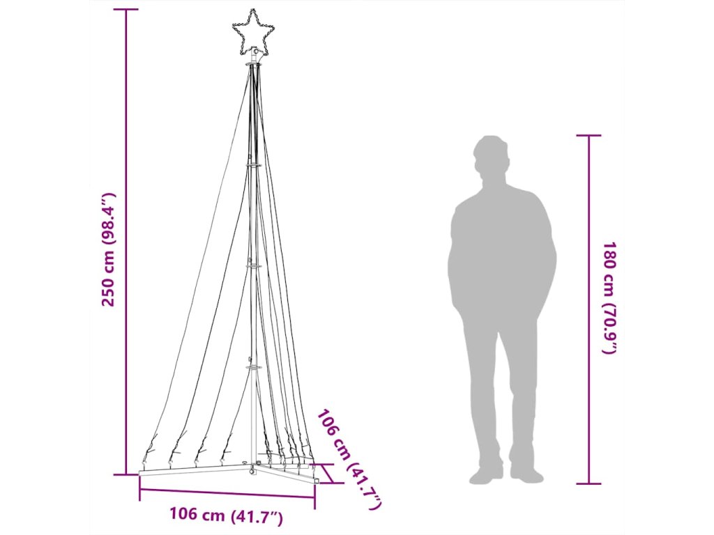 - Snadné sestavení a skladování: Kompletní montážní sada obsahuje odnímatelný stojan, spojovací tyče, háčky a zemní kolíky, které umožňují snadné a rychlé sestavení tohoto LED vánočního stromku. Je skládací, což vám usnadní jeho skladování a umožní opakované použití, přičemž zabírá minimum místa.