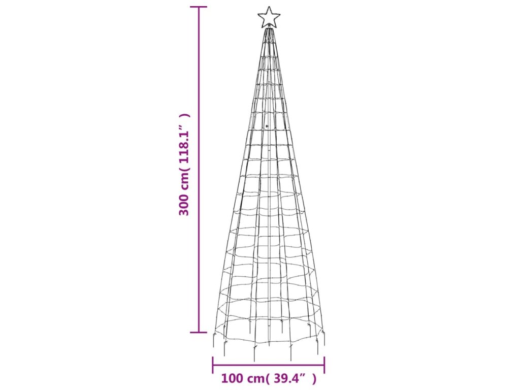 - Návod k montáži: Hrot je třeba zapíchnout do země. Každý světelný řetěz je třeba pomocí zemního hrotu zasunout do země. Celý stromek musí být stabilizován pomocí několika dlouhých řetězů.