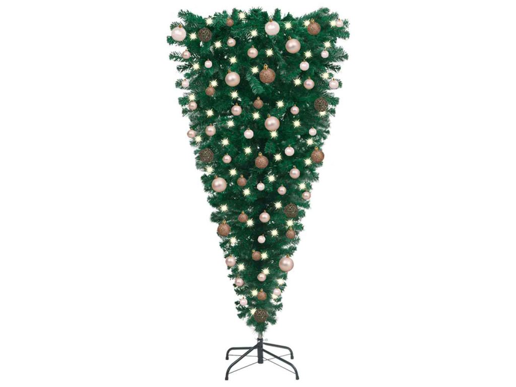 Obrácený umělý vánoční stromek s LED a sadou koulí 180 cm 3078057