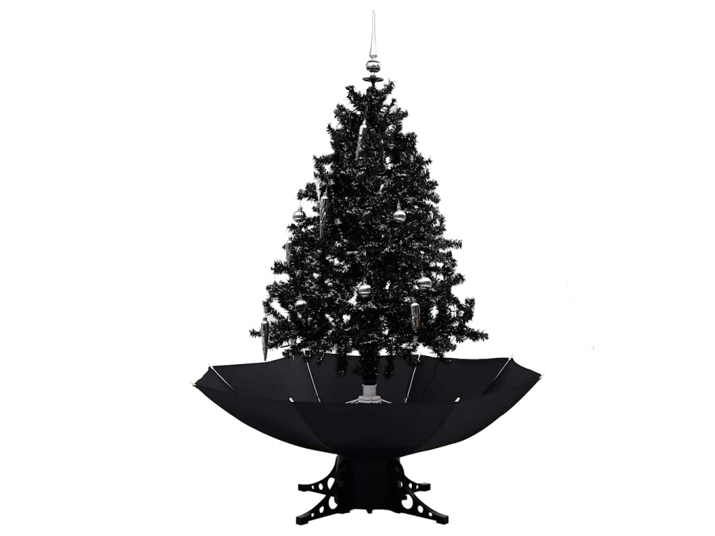 Sněžící vánoční stromek s deštníkovým stojanem černý 140 cm PVC 289932
