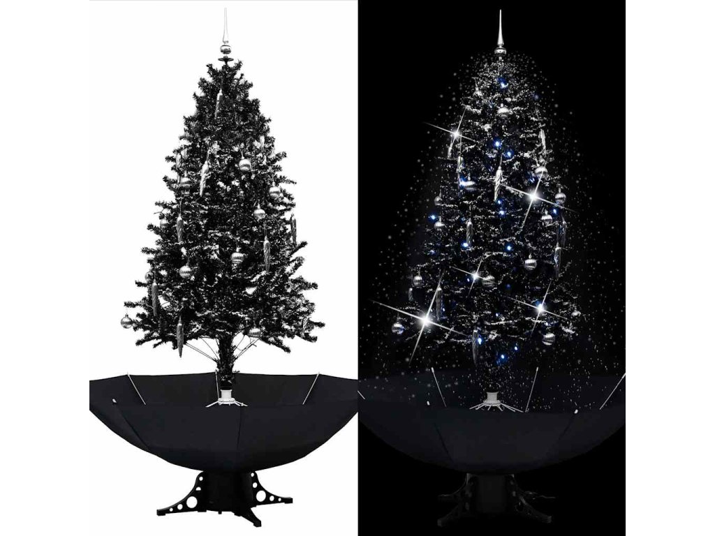 Sněžící vánoční stromek s deštníkovým stojanem černý 190 cm PVC 289934