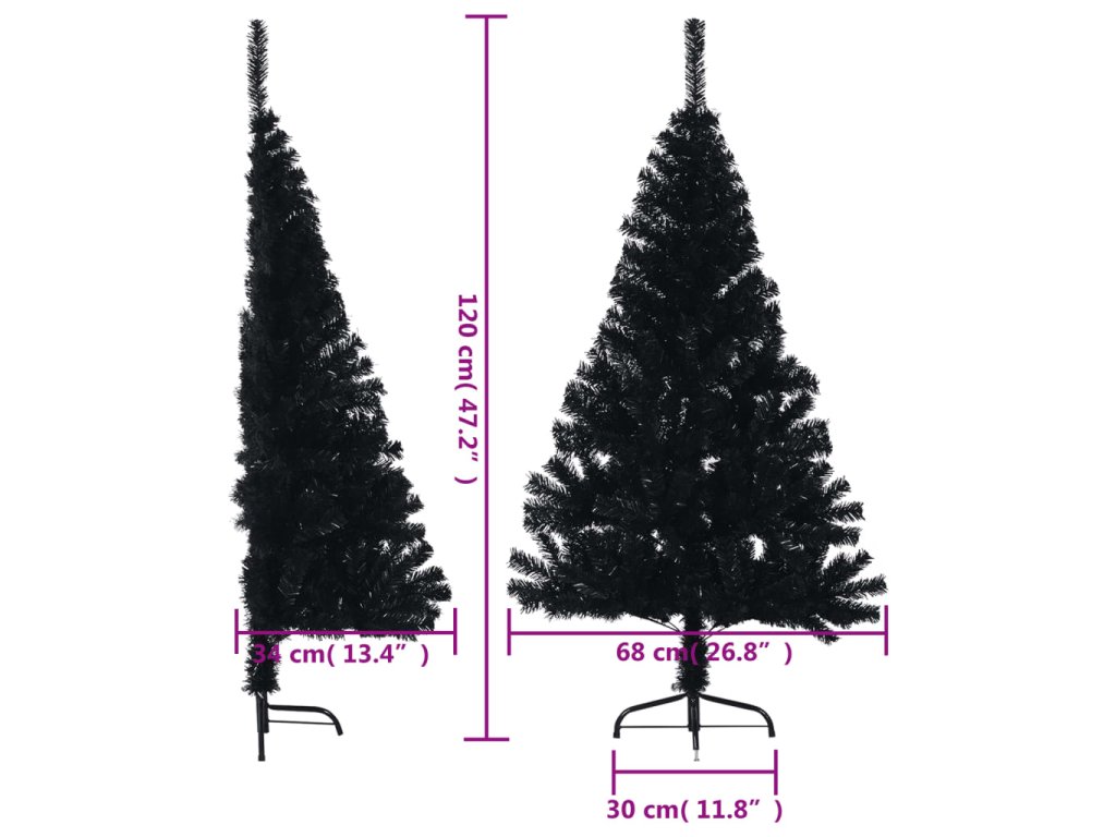 Umělý poloviční vánoční stromek se stojanem černý 120 cm PVC 344675