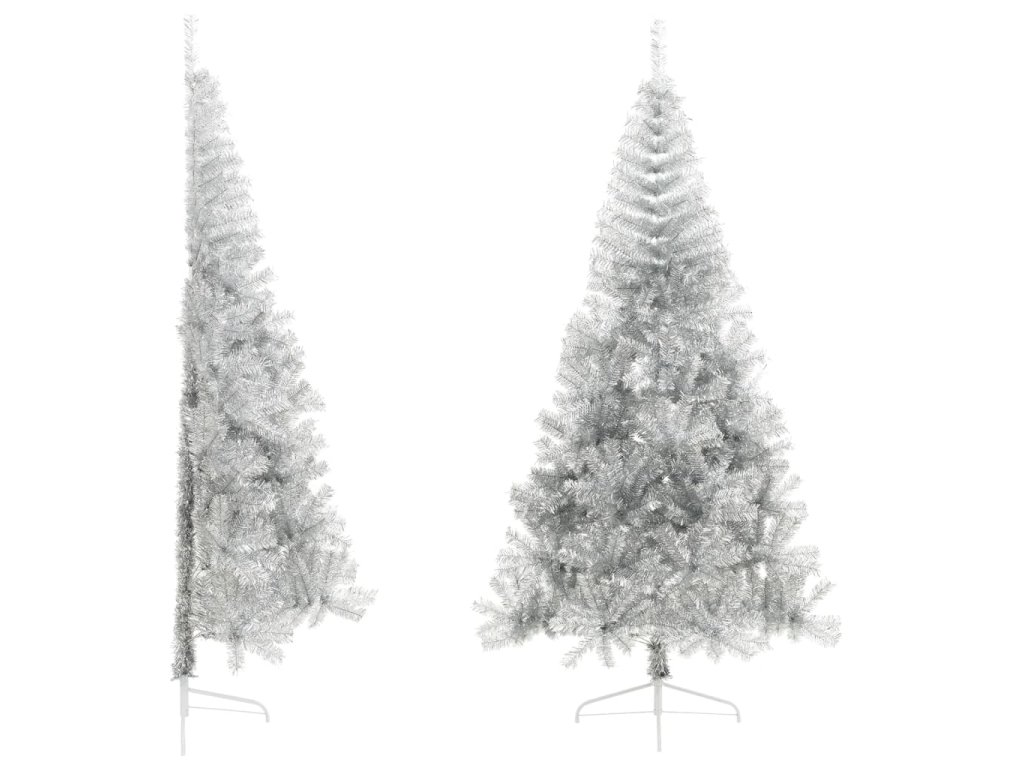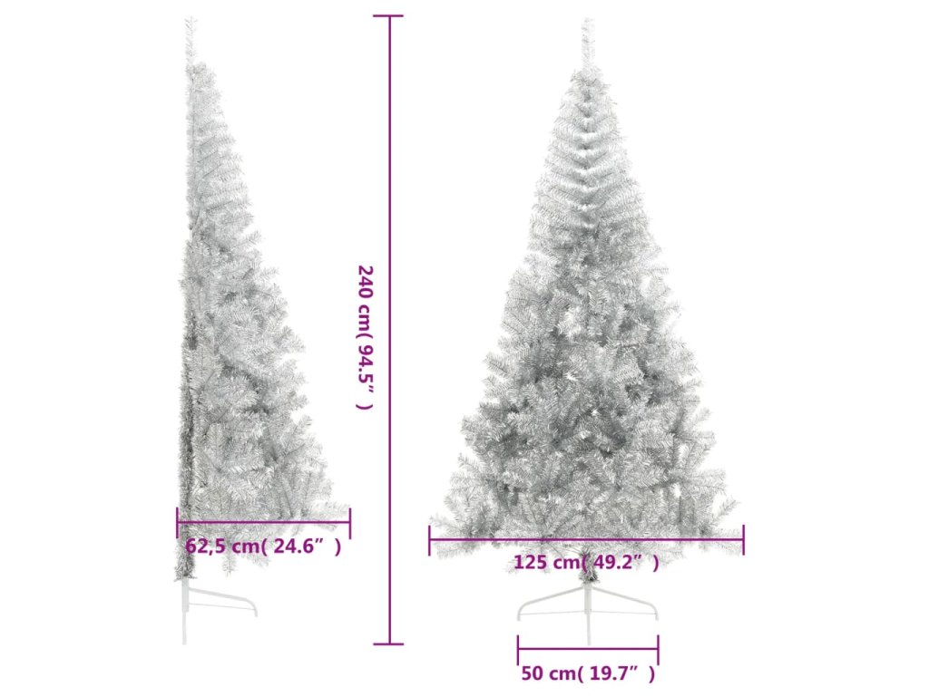 Umělý poloviční vánoční stromek se stojanem stříbrný 240 cm PET 344699