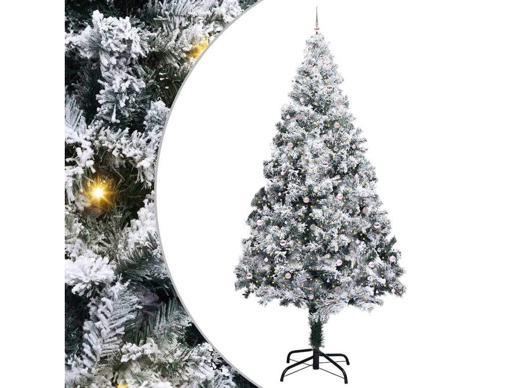 Umělý předem osvětlený vánoční stromek s kuličkami Zelená 3394831