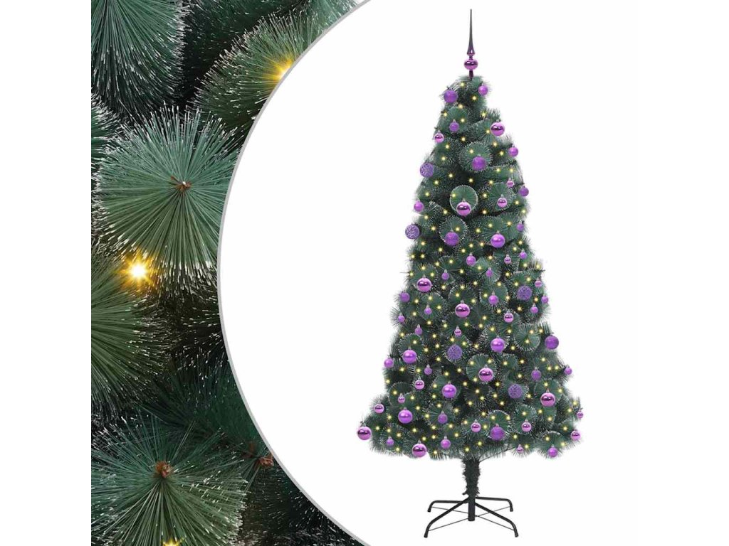 Umělý předem osvětlený vánoční stromek se sadou koulí 210 cm 3396184