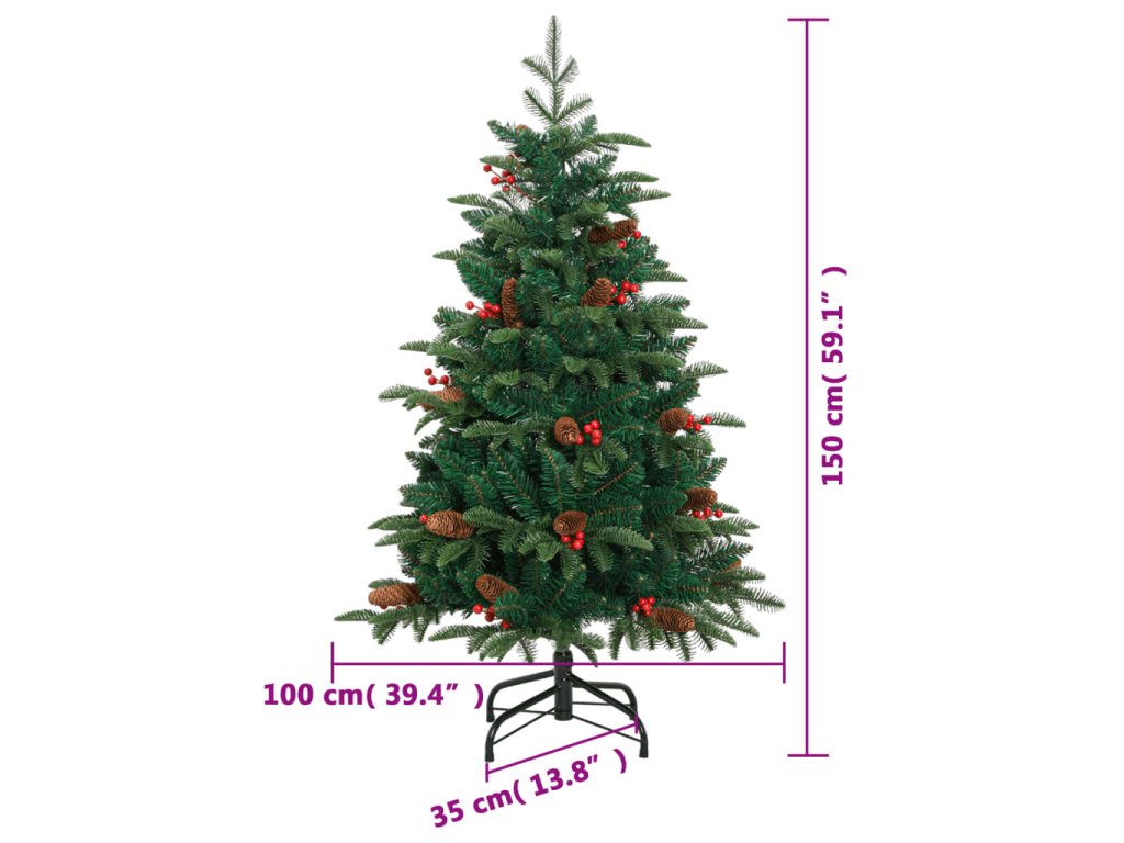 Umělý sklápěcí vánoční stromek s šiškami a bobulemi 150 cm 358375