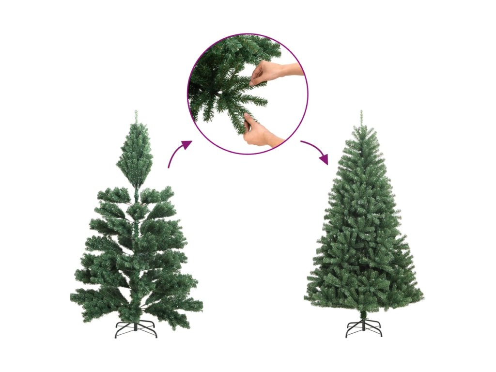 - Po sestavení doporučujeme vyhradit si 30–45 minut na správné vytvarování stromku odhrnutím větví a odtažením špiček od sebe, aby větve vypadaly plnější.