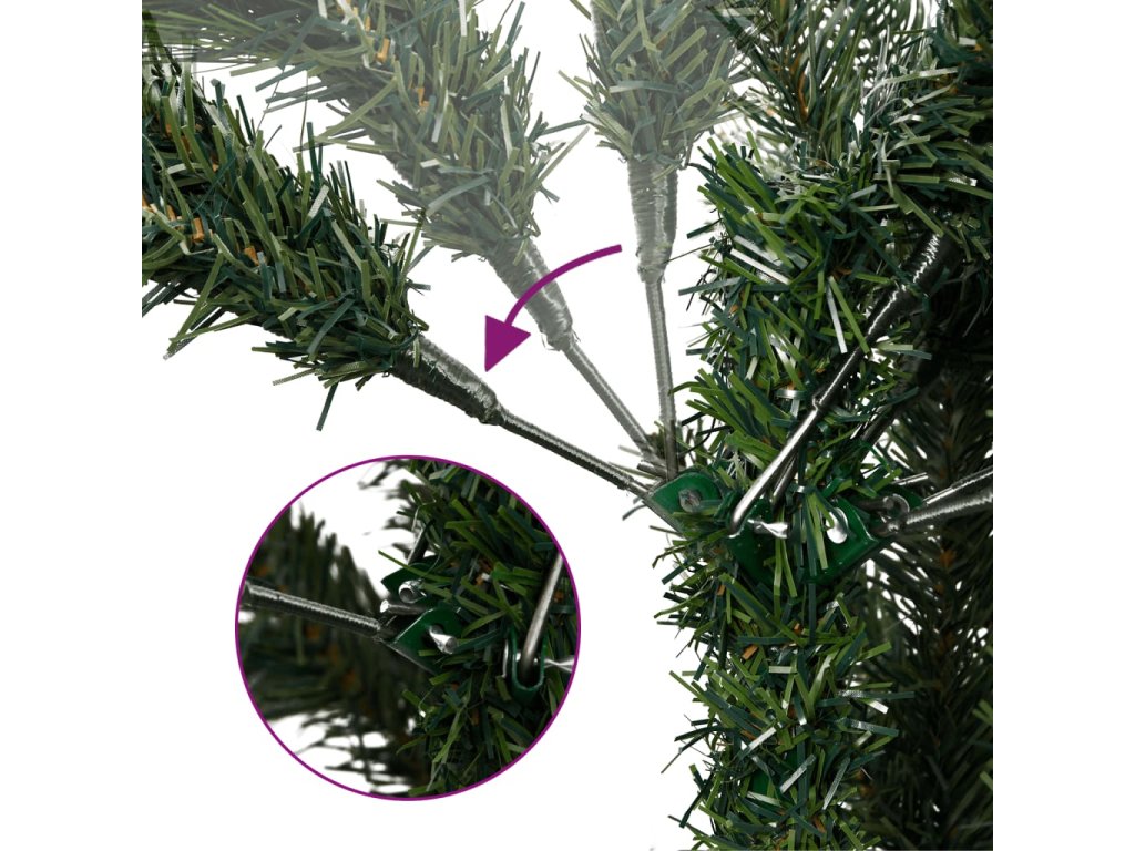 - Realistické větve: Vánoční dekorace má borové větve z PVC, které jsou jako živé a dodávají stromku přirozenější vzhled.