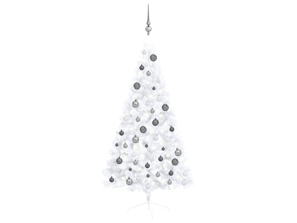 Umělý vánoční půl stromek s LED a sadou koulí bílý 150 cm 3077655