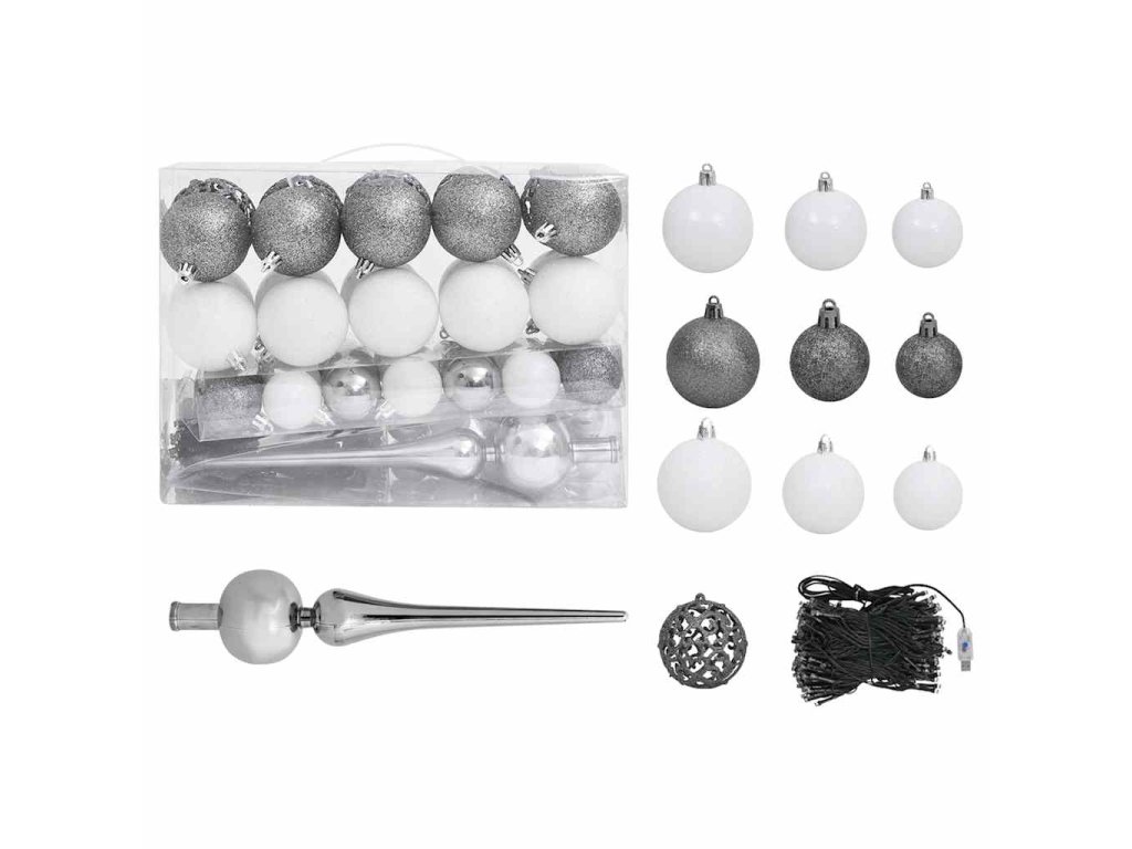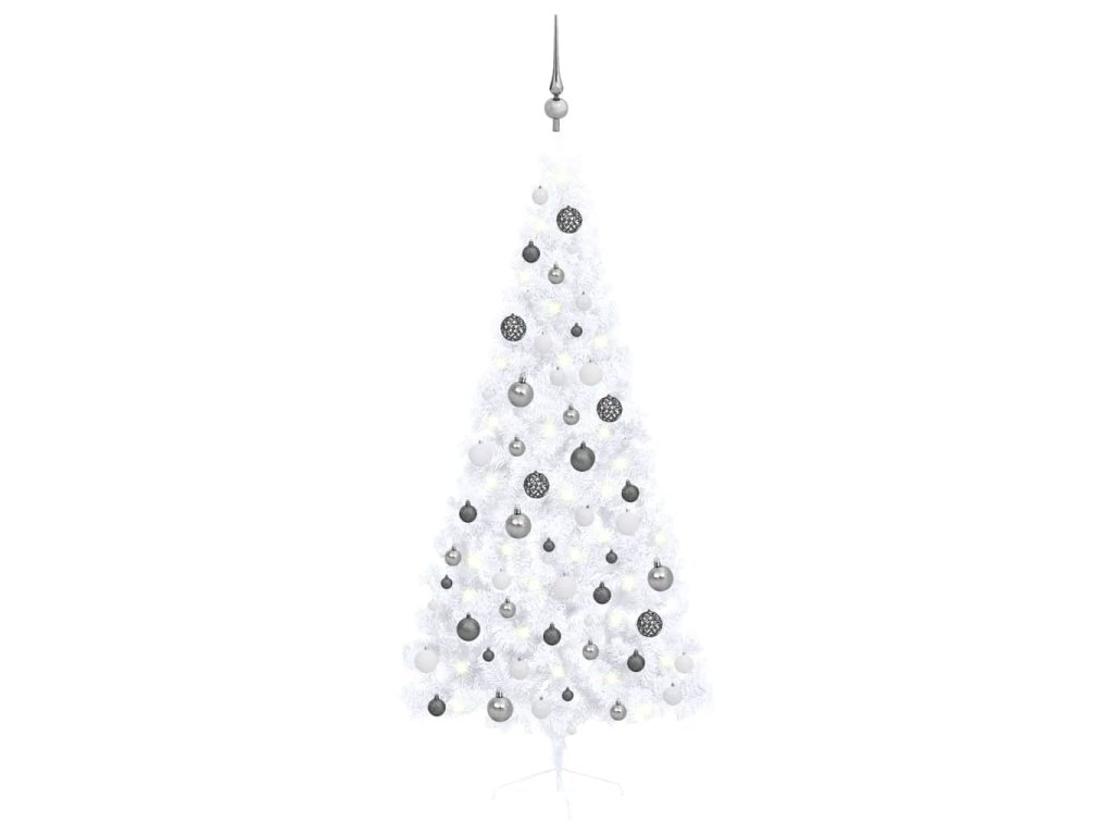 Umělý vánoční půl stromek s LED a sadou koulí bílý 180 cm 3077656