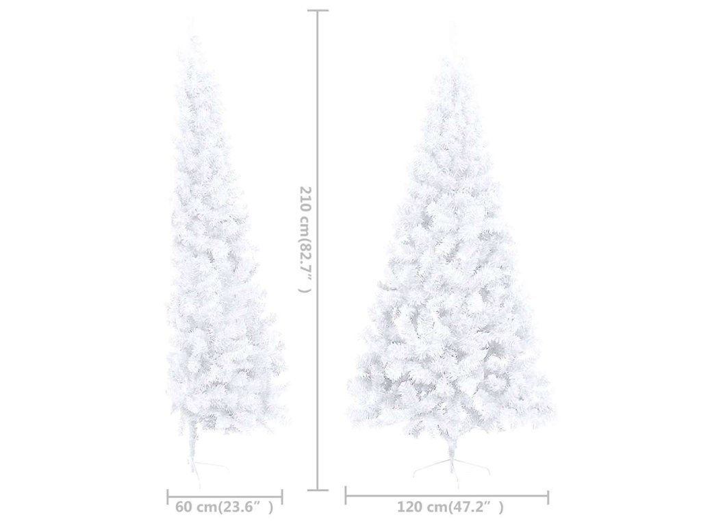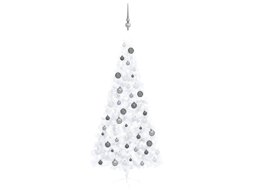 Umělý vánoční půl stromek s LED a sadou koulí bílý 210 cm 3077657