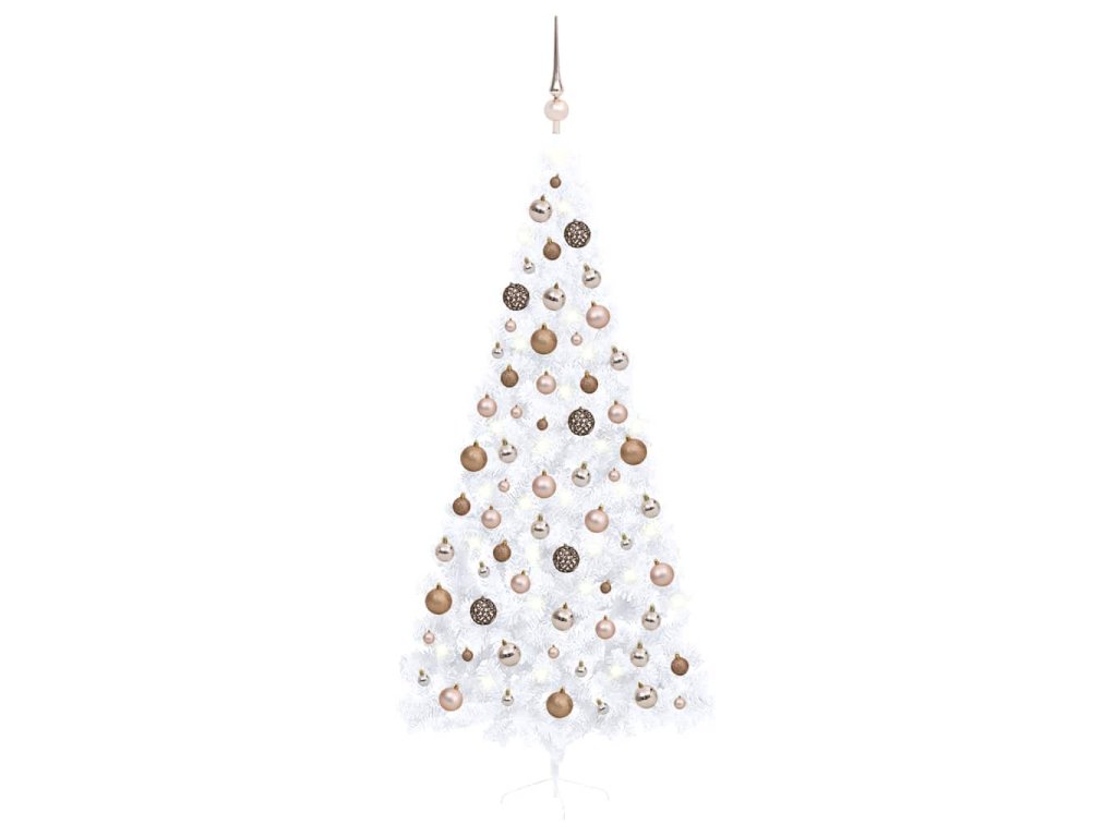 Umělý vánoční půl stromek s LED a sadou koulí bílý 240 cm 3077572