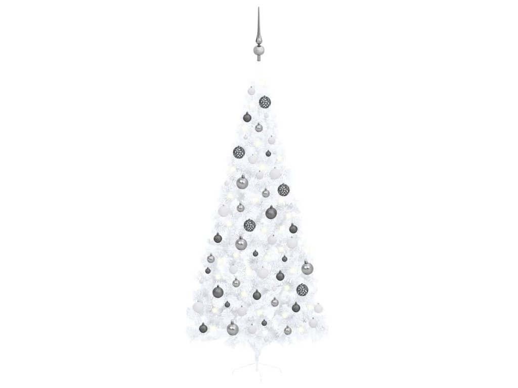 Umělý vánoční půl stromek s LED a sadou koulí bílý 240 cm 3077658