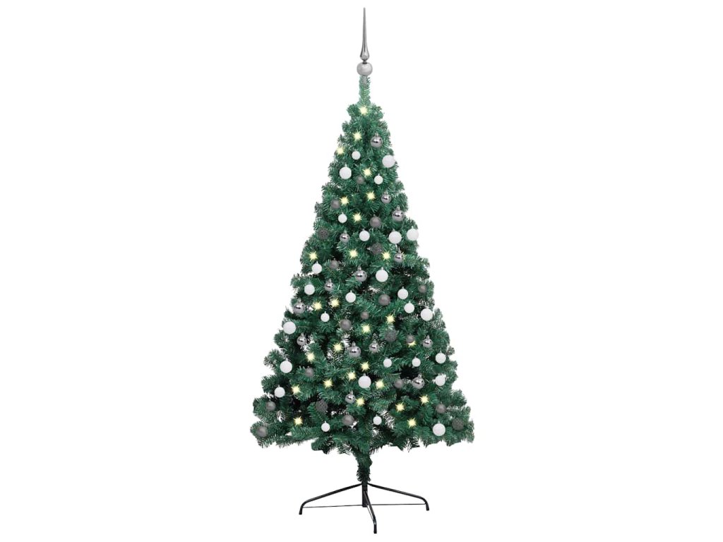 Umělý vánoční půl stromek s LED a sadou koulí zelený 210 cm 3077652