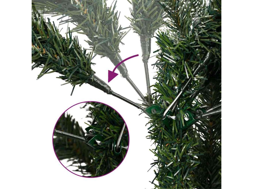 Tento moderní umělý vánoční strom s kloubovými větvemi je základním kouskem vánoční výzdoby. Kombinuje styl a jednoduchost. Jeho větve z PVC a železný stojan dodávají elegantní a minimalistický vzhled, ideální pro ty, co si potrpí na moderní estetiku. Tento strom je určený jak do interiéru, tak na chráněné venkovní prostory, a dokonale navodí vánoční atmosféru.