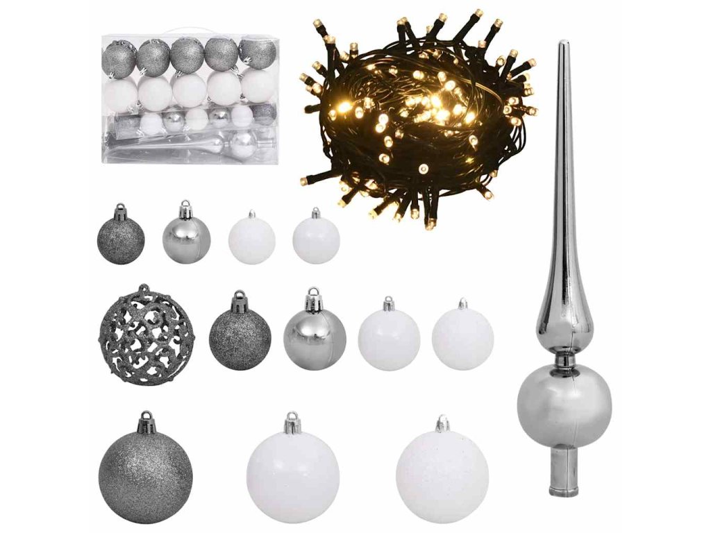 - Dekorativní prvky: Tento stromeček má jednoduché, ale výrazné dekorace, které dodávají moderní vzhled. Dekorativní akcenty přetvářejí tvůj obývák nebo venkovní prostor na sváteční svatyni.