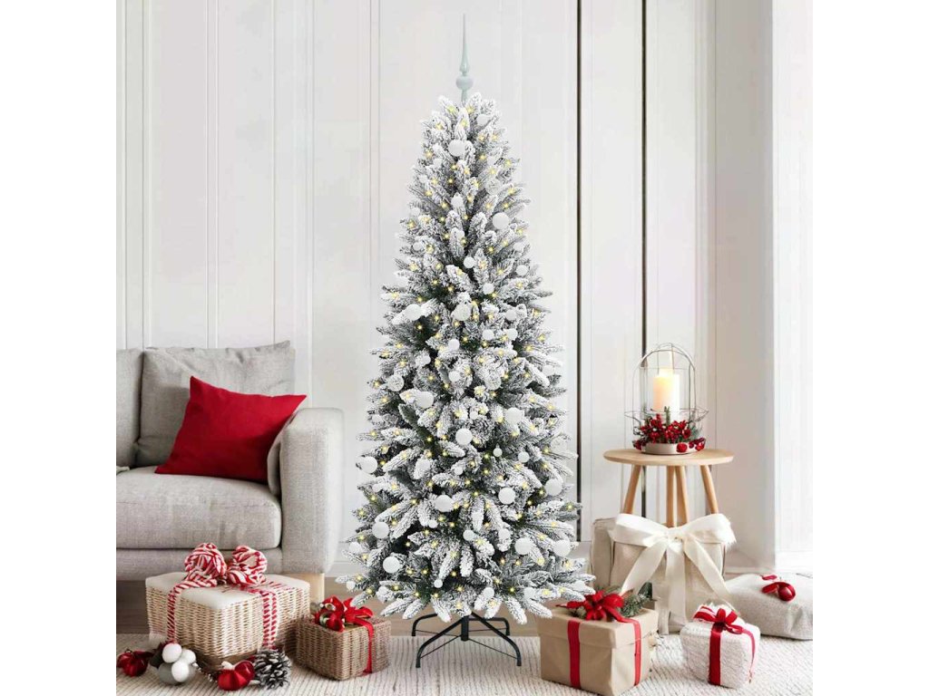 - Dekorativní prvky: Tento stromeček má jednoduché, ale výrazné dekorace, které dodávají moderní vzhled. Dekorativní akcenty přetvářejí tvůj obývák nebo venkovní prostor na sváteční svatyni.