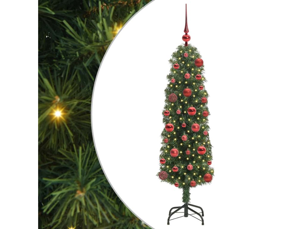 - Odolné materiály: Tento strom je vyrobený z kvalitního PVC, takže vypadá realisticky a zároveň vydrží. Kovová konstrukce zajišťuje stabilitu a udržuje tvar stromu po více svátcích. Kombinace materiálů dělá strom robustním a krásným.
