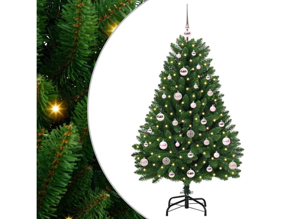 Odolná konstrukce z PVC a oceli: Tento strom je vyroben z odolných materiálů, takže vydrží roky a zachovává si svůj realistický vzhled – přidává vášně do vaší výzdoby. Integrovaná světla napájená USB: Užívejte si úsporná LED světla, která poskytují teplé bílé osvětlení a navozují příjemnou atmosféru, snadno přizpůsobitelnou pro různé příležitosti. Kompletní sada koulí v ceně: Díky ozdobám v balení je váš strom okamžitě připravený k použití a vypadá skvěle bez nutnosti dalších nákupů. Ozdoby ladí s moderním designem stromu. Skvělá pro skladování: Skládací design usnadňuje uložení stromu, když není v provozu. Otočte ho a klasicky složte, takže ušetříte místo. Jednoduchá údržba: O stromeček se snadno staráte, stačí ho otřít suchým hadříkem. Když ho zrovna nepotřebujete, skladujte ho na suchém a chladném místě – díky tomu si uchová svůj skvělý vzhled na další Vánoce.- Barva: Zelená