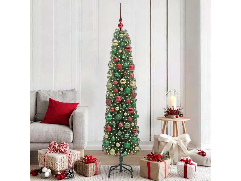 - Odolné materiály: Tento strom je vyrobený z kvalitního PVC, takže vypadá realisticky a zároveň vydrží. Kovová konstrukce zajišťuje stabilitu a udržuje tvar stromu po více svátcích. Kombinace materiálů dělá strom robustním a krásným.