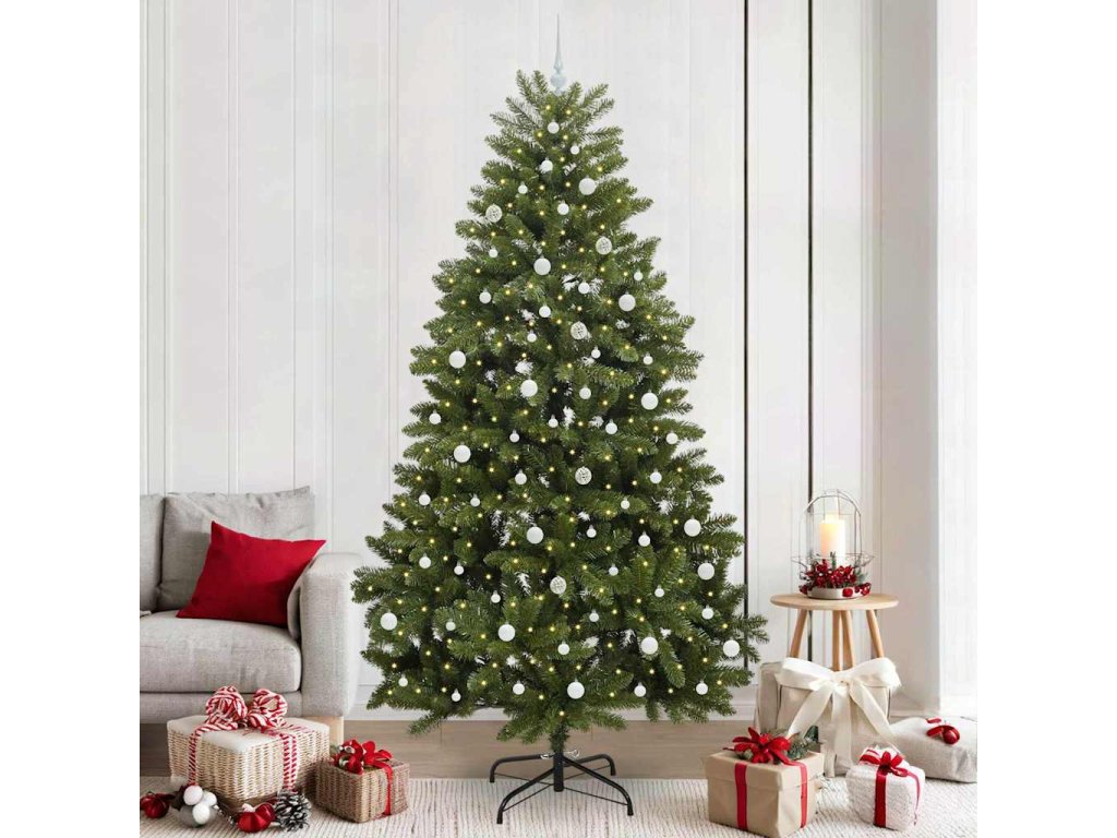 Tento umělý vánoční strom spojuje špičkový design s LED světly a dekorativními koulemi. Jednoduše se hodí jak do vnitřních prostor, tak ven. Jeho styl se hodí k různým výzdobám a stane se skvělým centrem pozornosti, které vyvolává sváteční náladu. Můžete ho umístit do obýváku, zahrady nebo na terasu a tím přinést nostalgické i moderní prvky do svátků.