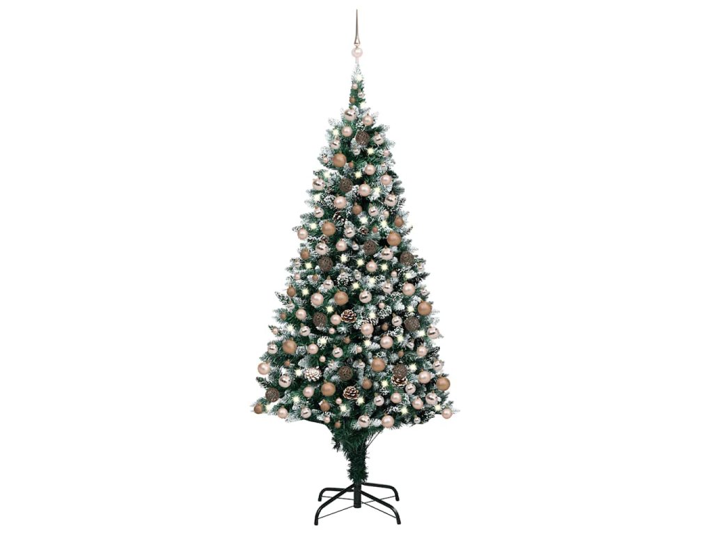 Umělý vánoční stromek LED osvětlení sada koulí a šišky 210 cm 3077618