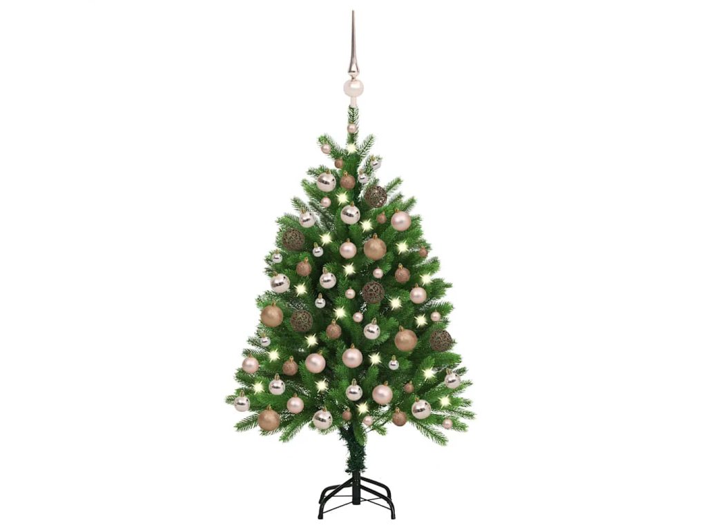 Umělý vánoční stromek s LED a sadou koulí 120 cm zelený 3077639