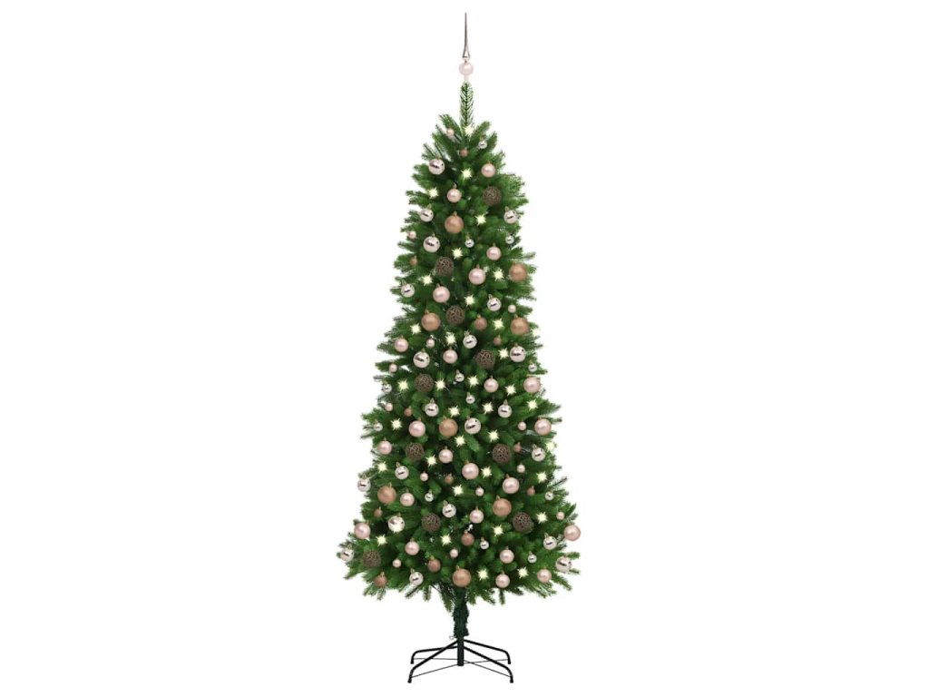 Umělý vánoční stromek s LED a sadou koulí 240 cm zelený 3077643