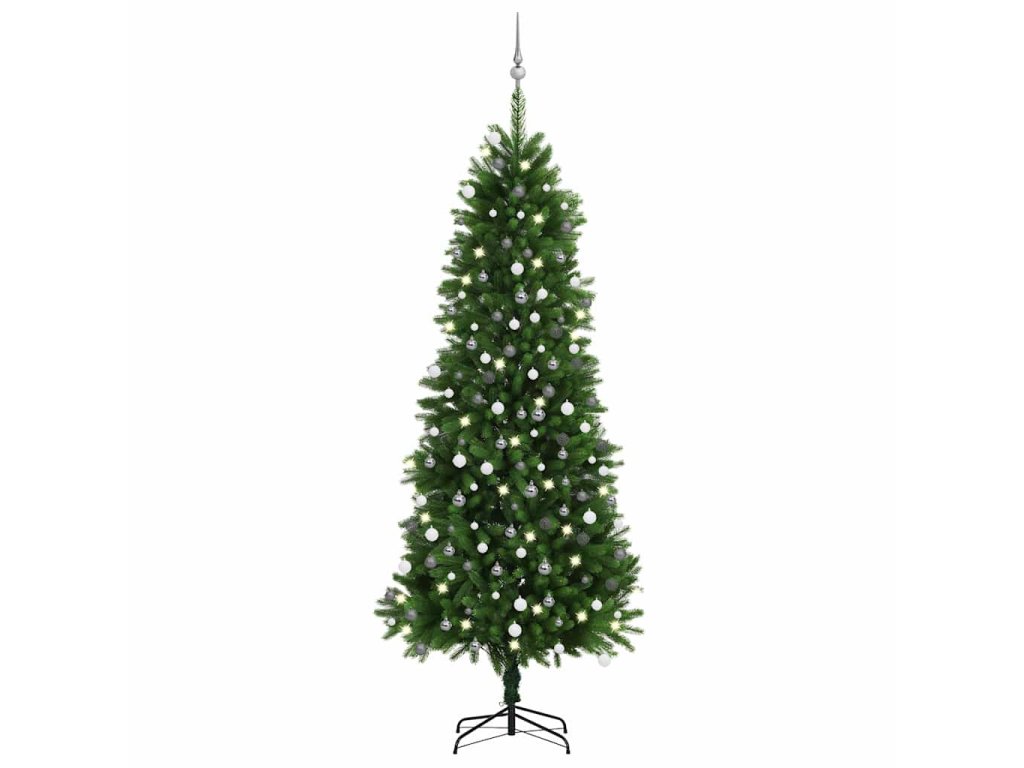 Umělý vánoční stromek s LED a sadou koulí 240 cm zelený 3077729