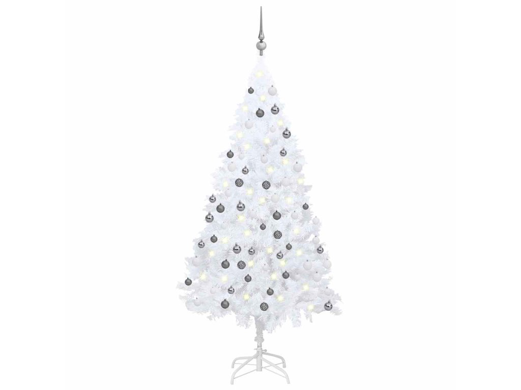 Umělý vánoční stromek s LED a sadou koulí bílý 180 cm PVC 3077713