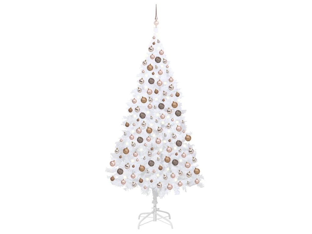 Umělý vánoční stromek s LED a sadou koulí bílý 210 cm PVC 3077628