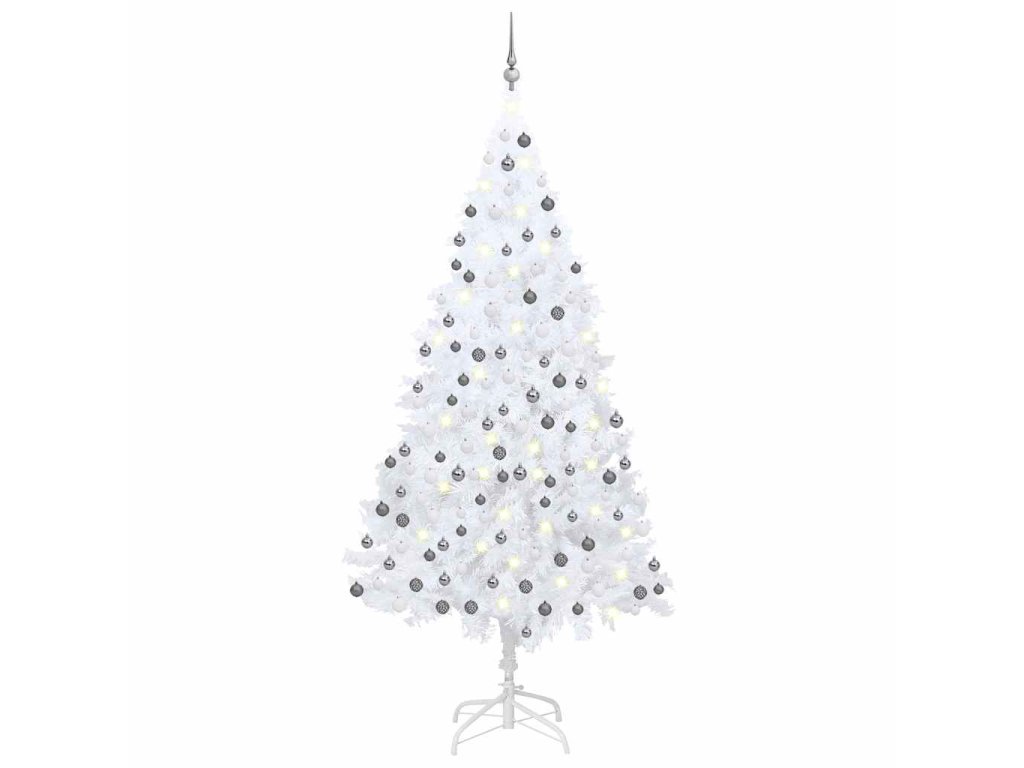 Umělý vánoční stromek s LED a sadou koulí bílý 210 cm PVC 3077714